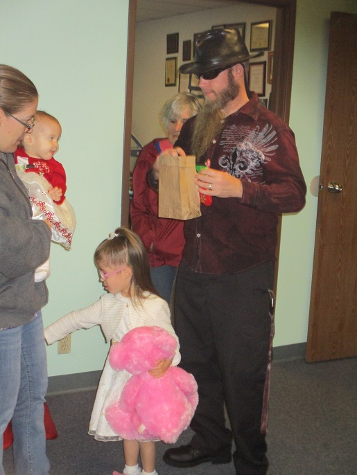 A father and his daughter holding her Christmas present The puppet tree in 2015 Blind Santa and two children Blind Santa and two children Brenda holding a small child Brenda holding a small child Blind Santa sitting with a little girl A little boy and his father A little boy and his gift bag A little boy picking out a stuffed animal at the Christmas party